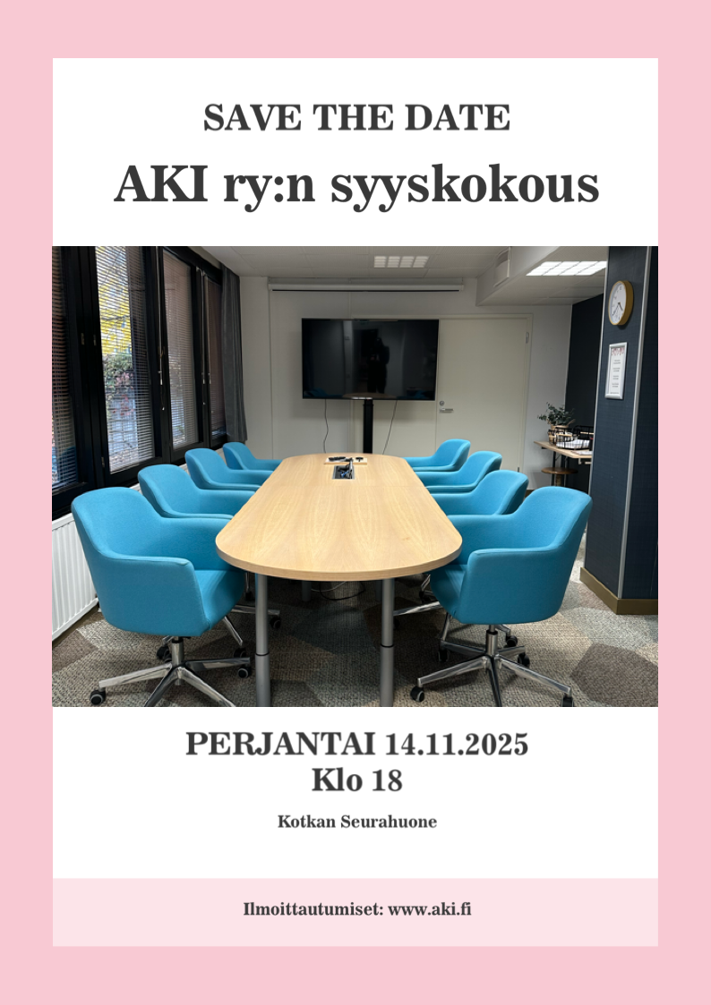 Ota yhteyttä sähköpostilla puheenjohtajaamme Linda Jaatiseen (puheenjohtaja (a) aki.fi ).